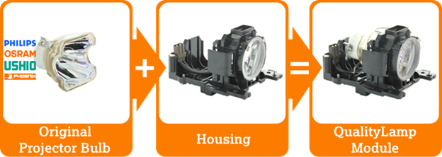 - Оригинальная лампа OSRAM / PHILIPS / USHIO в не оригинальном модуле.